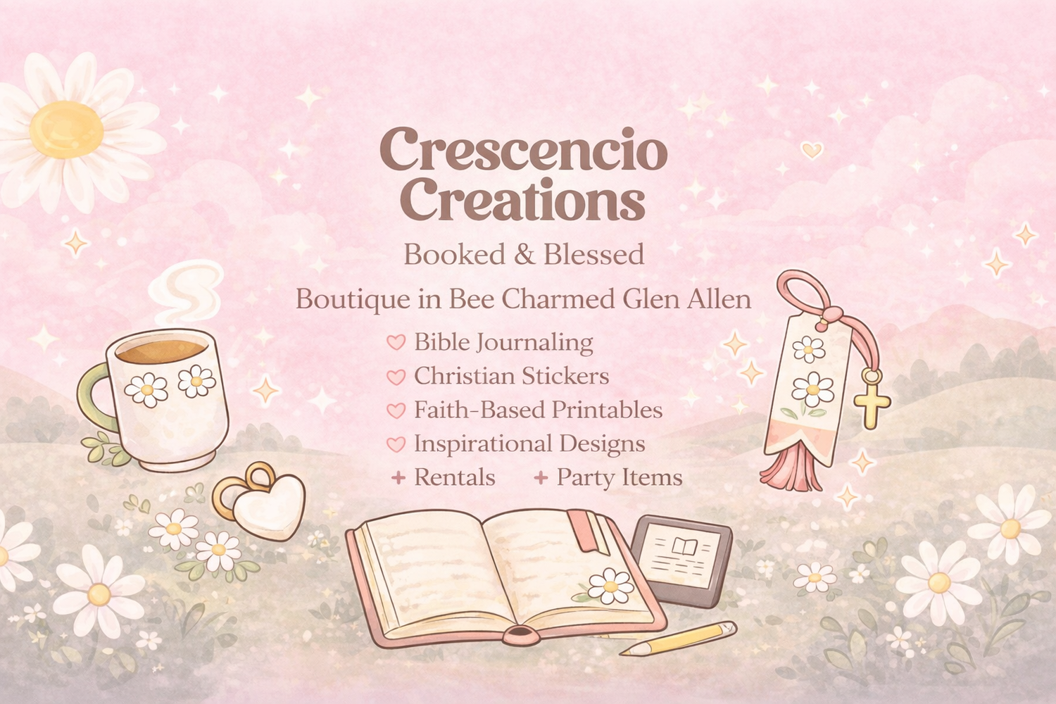 Crescencio Creations is a faith-rooted small business specializing in custom apparel, embroidery, tumblers, party décor, cake toppers, and bookish accessories.